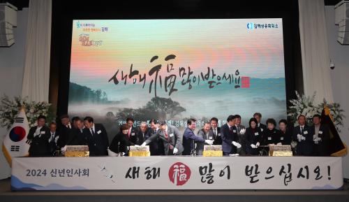 [½Åµ¿¾Æ¹æ¼Û´º½º=±èÁÖ¿¬±âÀÚ] ±èÇØ»ó°øÈ¸ÀǼÒ(ȸÀå ¹Ú¸íÁø)´Â 3ÀÏ ±èÇØ¾ÆÀ̽ºÄù¾îÈ£ÅÚ ±×·£µåº¼·ë¿¡¼­ ¡®2024 ½Å³âÀλçȸ¡¯¸¦ °³ÃÖÇß´Ù. ±èÇØ»ó°øÈ¸ÀÇ¼Ò ½Å³âÀλçȸ´Â ¸Å³â Áö¿ª °æÁ¦Àΰú Á¤Ä¡ÀÎ, ÁÖ¿äÀÎ»ç µî Áö¿ª ±¸¼º¿øµéÀÌ ÇÑÀÚ¸®¿¡ ¸ð¿© »õÇØ Àλç¿Í ´ö´ãÀ» ³ª¡¦