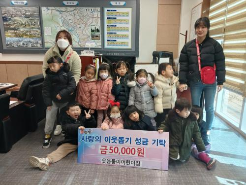 [½Åµ¿¾Æ¹æ¼Û´º½º=ÃÖ¼ÛÈ­±âÀÚ] ±èÇØ½Ã ÀåÀ¯1µ¿ ÇàÁ¤º¹Áö¼¾ÅÍ´Â Áö³­ 8ÀÏ ¡®¿ôÀ½µÕÀÌ ¾î¸°ÀÌÁý¡¯¿¡¼­ ¾î·Á¿î ÀÌ¿ôÀ» À§ÇØ »ç¿ëÇØ ´Þ¶ó¸ç ¼º±Ý 5¸¸¿øÀ» ±âŹÇß´Ù°í ¹àÇû´Ù. À̹ø ±âʱÝÀº Áö³­ ¿¬¸» ¾î¸°ÀÌÁý ¿ø¾Æ 18¸í°ú ±³»çµéÀÌ Âü¿©ÇÑ ¡®¾Æ³ª¹Ù´Ù ¿îµ¿¡¯À» ÅëÇØ ¾ò¡¦