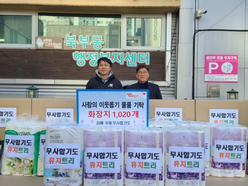[½Åµ¿¾Æ¹æ¼Û´º½º=ÃÖ¼ÛÈ­±âÀÚ] ±èÇØ »ï°èµ¿ ¼ÒÀç ±¹Á¦¹«»çÇձ⵵(°üÀå È«»óÈñ)¿¡¼­ Áö³­ 5ÀÏ, °ü³» ¾î·Á¿î ÀÌ¿ôµé À§ÇØ ½á´Þ¶ó¸ç µÎ·ç¸¶¸® È­ÀåÁö 1,000¿©°³¸¦ ºÏºÎµ¿ÇàÁ¤º¹Áö¼¾ÅÍ¿¡ ±âŹÇß´Ù. À̳¯ ±âʹÞÀº ¹°Ç°Àº ±¹Á¦¹«»çÇձ⵵ °üÀå´ÔÀ» ºñ·ÔÇÑ Çձ⵵ ¼ö·Ã»ýµéÀÌ¡¦