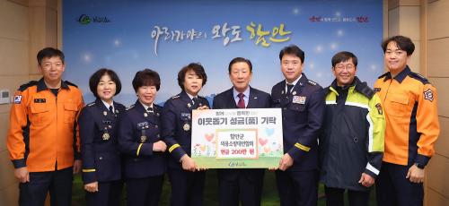 [½Åµ¿¾Æ¹æ¼Û ÇÔ¾È=À̽ŵ¿±âÀÚ]ÇԾȼҹ漭 ÀÇ¿ë¼Ò¹æ´ë¿¬ÇÕȸ(¿¬ÇÕȸÀå ÃÖºÀ¼®, ¿©¼ºÈ¸Àå ¾ç¿µÈñ)´Â 9ÀÏ Ãë¾à°èÃþÀ» µ½±â À§ÇÑ ¼º±Ý 200¸¸ ¿øÀ» ÇԾȱº¿¡ ±âŹÇß´Ù. À̳¯ ±âŹ½Ä¿¡´Â Á¶±ÙÁ¦ ÇԾȱº¼ö¿Í ÇԾȼҹ漭 ÀÇ¿ë¼Ò¹æ´ë¿¬ÇÕȸ ÃÖºÀ¼® ¿¬ÇÕȸÀå°ú ¾ç¿µÈñ ¿©¼ºÈ¸À塦