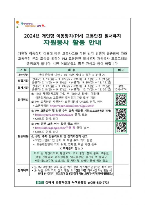 [½Åµ¿¾Æ¹æ¼Û´º½º=ÃÖ¼ÛÈ­±âÀÚ] ±èÇØ½Ã(½ÃÀå ȫſë)´Â °³ÀÎÇü À̵¿ÀåÄ¡(PM) À̿뿡 µû¸¥ ±³Åë»ç°í¿Í ±â±â ¹«´ÜÁÖÂ÷·Î ÀÎÇÑ º¸Çà ºÒÆí ¹Î¿øÀÌ Áö¼ÓµÊ¿¡ µû¶ó ±³Åë¾ÈÀü Áú¼­ È®¸³À» À§ÇØ PM ±³Åë¾ÈÀü ÀÚ¿øºÀ»ç ÇÁ·Î±×·¥À» È®´ë ¿î¿µÇÑ´Ù°í 17ÀÏ ¹àÇû´Ù. ½Ã´Â Áö³­ÇØ Ã³¡¦