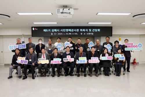 [½Åµ¿¾Æ¹æ¼Û´º½º=ÃÖ¼ÛÈ­±âÀÚ] ±èÇØ½Ã(½ÃÀå ȫſë)´Â 25ÀÏ ¿ÀÀü 11½Ã ½Ãû ¼ÒȸÀǽǿ¡¼­ Á¦6±â ±èÇØ½Ã ½Ã¹Î¸í¿¹°¨»ç°ü 22¸íÀÇ À§Ã˽ÄÀ» °³ÃÖÇß´Ù. »õ·Î À§ÃËµÈ ½Ã¹Î¸í¿¹°¨»ç°üÀº À¾¡¤¸é¡¤µ¿ÀåÀÇ ÃßõÀ» ¹Þ¾Æ »ç¸í°¨ÀÌ ³ô°í ´ö¸ÁÀÌ ³ôÀº ±èÇØ½Ã¹Îµé·Î ±¸¼ºµÇ¾úÀ¸¡¦
