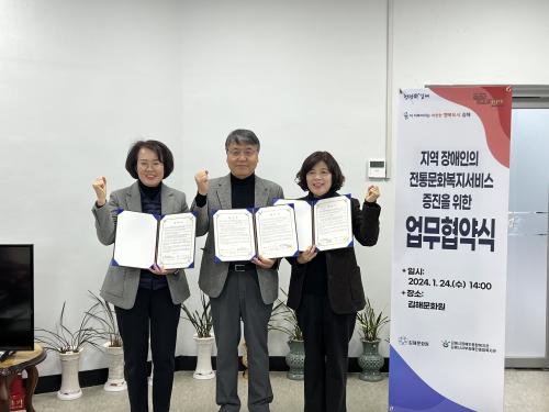 [½Åµ¿¾Æ¹æ¼Û´º½º=ÃÖ¼ÛÈ­±âÀÚ] (Àç)±èÇØ½Ãº¹ÁöÀç´Ü(´ëÇ¥ÀÌ»ç ÃÖÁ¤±Ô)¿¡¼­ ¿î¿µÇÏ´Â ±èÇØ½ÃÀå¾ÖÀÎÁ¾ÇÕº¹Áö°ü(°üÀå ¿©¹ÌÁø)°ú ±èÇØ½Ã¼­ºÎÀå¾ÖÀÎÁ¾ÇÕº¹Áö°ü(°üÀå °­¹Ì°æ)Àº ±èÇØ¹®È­¿ø(¿øÀå ±è¿ì¶ô)°ú Áö¿ª Àå¾ÖÀÎÀÇ ÀüÅ빮ȭº¹Áö¼­ºñ½º ÁõÁøÀ» À§ÇÑ ¾÷¹«Çù¾à½ÄÀ» 1¿ù 24¡¦