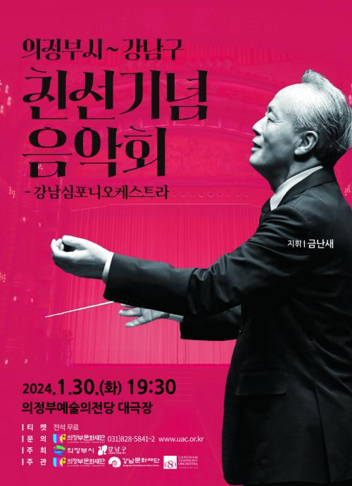 [½Åµ¿¾Æ¹æ¼Û °­³²=À̽ŵ¿±âÀÚ]°­³²±¸°¡ Ä£¼±°á¿¬µµ½Ã ÀÇÁ¤ºÎ½Ã¿Í ÇÔ²² ¿À´Â 1¿ù 30ÀÏ 19½Ã 30ºÐ~21½Ã 30ºÐ ÀÇÁ¤ºÎ¿¹¼úÀÇÀü´ç ´ë±ØÀå¿¡¼­ À½¾Çȸ¸¦ ÁøÇàÇÑ´Ù. À̹ø °ø¿¬Àº Áö³­ÇØ 7¿ù 11ÀÏ °­³²±¸¿Í ÀÇÁ¤ºÎ½Ã°¡ Ä£¼±°á¿¬À» ü°áÇÑ ÀÌÈÄ °ø½ÄÀûÀ¸·Î ¼±º¸À̴ ù ¹®È­±³¡¦