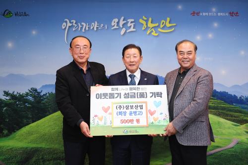 Áö³­ÇØ ÀÌ¾î ¿ÃÇØµµ ³ª´® µ¿Âü ¡¦ ¢ß»ïº¸»ê¾÷, ÇԾȱº ÀÌ¿ôµ½±â ¼º±Ý 500¸¸ ¿ø ±âŹ