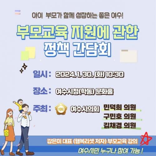 ¿©¼ö½ÃÀÇȸ, À¯¾Æº¸À° ȯ°æ°³¼±À» À§ÇÑ ºÎ¸ð±³À°Áö¿ø Á¤Ã¥°£´ãȸ °³ÃÖ