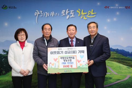 [½Åµ¿¾Æ¹æ¼Û ÇÔ¾È=À̽ŵ¿±âÀÚ]ÇԾȱº ¿©Ç×»ê ±Ý°è¸¶À» ¿µ³óÁ¶ÇÕ(ȸÀå ¾È°ÇÁØ)¿¡¼­ Áö³­ 29ÀÏ ÁÖº¯ÀÇ ¾î·Á¿î ÀÌ¿ôÀ» À§ÇÑ ÀÌ¿ôµ½±â ¼º±Ý 100¸¸ ¿øÀ» ÇԾȱº¿¡ ±âŹÇß´Ù. À̳¯ ±âŹ½Ä¿¡´Â Á¶±ÙÁ¦ ÇԾȱº¼ö¿Í ¿©Ç×»ê ±Ý°è¸¶À» ¿µ³óÁ¶ÇÕ È¸Àå ¾È°ÇÁØ ¹× ȸ¿øµé µî °ü°èÀÚ¡¦