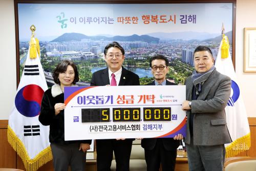 [½Åµ¿¾Æ¹æ¼Û´º½º=±èÁÖ¿¬±âÀÚ] ±èÇØ½Ã´Â 29ÀÏ (»ç)Àü±¹°í¿ë¼­ºñ½ºÇùȸ ±èÇØÁöºÎ(ÁöºÎÀå ÀÌ¿ø¼·)¿¡¼­ ºÒ¿ìÇÑ ÀÌ¿ôÀ» À§ÇØ ¼º±Ý 500¸¸¿øÀ» ±âŹÇß´Ù°í ¹àÇû´Ù. (»ç)Àü±¹°í¿ë¼­ºñ½ºÇùȸ ±èÇØÁöºÎ´Â °ü³» 170¿©°³ À¯·áÁ÷¾÷¼Ò°³»ç¾÷¼Ò ȸ¿ø ´Üü·Î, 2010³âºÎÅÍ 14³â° ¸Å³â¡¦