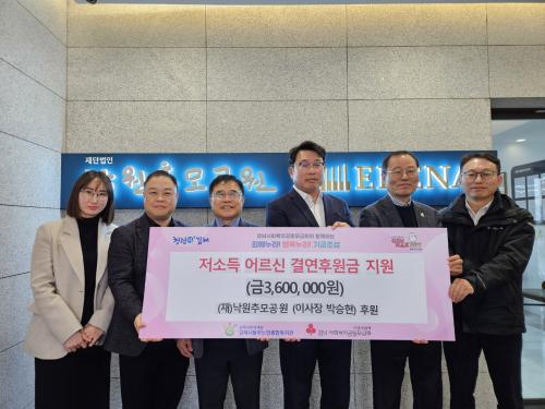 [½Åµ¿¾Æ¹æ¼Û´º½º=ÃÖ¼ÛÈ­±âÀÚ] ¡Û (Àç)³«¿øÃß¸ð°ø¿øÀº ±èÇØ½Ãº¹ÁöÀç´Ü(´ëÇ¥ÀÌ»ç ÃÖÁ¤±Ô) ±èÇØ½Ãµ¿ºÎ³ëÀÎÁ¾ÇÕº¹Áö°ü¿¡ Àú¼Òµæ ¾î¸£½Å °æÁ¦Àû Áö¿øÀ» À§ÇÑ °á¿¬ÈÄ¿ø±Ý(±Ý3,600,000¿ø)À» Àü´ÞÇÏ¿´´Ù. ¡Û °á¿¬ÈÄ¿ø±ÝÀº °æÁ¦ÀûÀ¸·Î Å« ¾î·Á¿òÀ» °Þ°í ÀÖ´Â Ãë¾à°èÃþ ¾î¸£½Å ¡¦