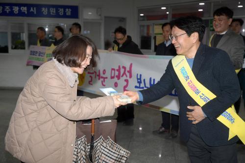 [½Åµ¿¾Æ¹æ¼Û=±èÀçÂù±âÀÚ] ±¤ÁÖ±¤¿ª½Ã(½ÃÀå °­±âÁ¤)´Â 6ÀÏ ½Ãû ·Îºñ¿¡¼­ Ãâ±ÙÇÏ´Â Á÷¿øµéÀ» ´ë»óÀ¸·Î ¡®¼³ ¸íÀý û·Å Ä·ÆäÀΡ¯À» ¹ú¿´´Ù. °­±âÁ¤ ½ÃÀå°ú °¨»çÀ§¿øÈ¸ Á÷¿øµéÀÌ ÇÔ²²ÇÑ À̳¯ Ä·ÆäÀÎÀº ¼³ ¸íÀýÀ» ¾ÕµÎ°í ±Ýǰ¼ö¼ö, À½ÁÖ¿îÀü µî È寮·¯Áö±â ½¬¿î °øÁ÷±â°­¡¦