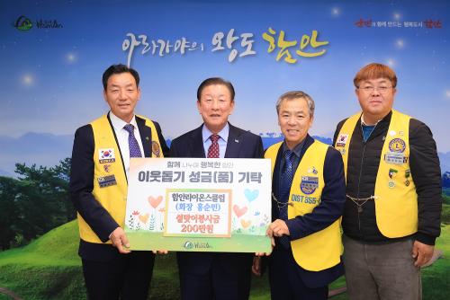 [½Åµ¿¾Æ¹æ¼Û ÇÔ¾È=À̽ŵ¿±âÀÚ]ÇԾȱºÀº ÇԾȶóÀ̿½ºÅ¬·´(ȸÀå È«¼ø¹Î)¿¡¼­ 15ÀÏ ±ºÃ»À» ¹æ¹®ÇØ ¾î·Á¿î ÀÌ¿ô µ½±â ¼º±Ý 200¸¸ ¿øÀ» Àü´ÞÇß´Ù°í ¹àÇû´Ù. À̳¯ ±âŹ½Ä¿¡´Â Á¶±ÙÁ¦ ÇԾȱº¼ö¿Í ÇԾȶóÀ̿½ºÅ¬·´ È«¼ø¹Î ȸÀåÀ» ºñ·ÔÇÑ °ü°èÀÚµéÀÌ Âü¼®ÇßÀ¸¸ç, Àü´ÞµÈ ºÀ¡¦