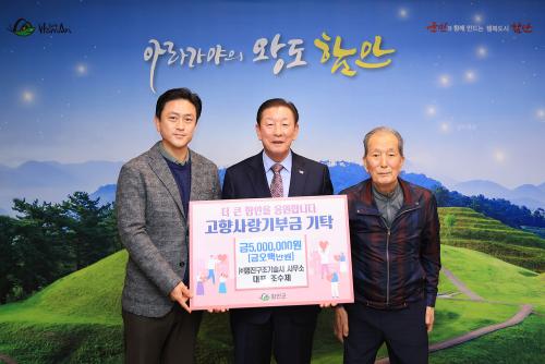 [½Åµ¿¾Æ¹æ¼Û ÇÔ¾È=À̽ŵ¿±âÀÚ]ÇԾȱºÀº 22ÀÏ °æ³² â¿ø½Ã ¼ÒÀç ¢ß¸íÁø±¸Á¶±â¼ú»ç »ç¹«¼Ò Á¶¼öÁ¦ ´ëÇ¥°¡ °íÇâ»ç¶û±âºÎ±Ý ÃÖ°í¾×ÀÎ 500¸¸ ¿øÀ» ±âŹÇß´Ù°í ¹àÇû´Ù. Á¶¼öÁ¦ ´ëÇ¥´Â À¯³â½ÃÀýÀ» ÇԾȿ¡¼­ º¸³»¸ç ÇÔ¾È °¡¾ßÃʵîÇб³¿Í ÇÔ¾ÈÁßÇб³¸¦ Á¹¾÷Çß´Ù. ÀÌÈÄ ºÎ»ê´ë¡¦
