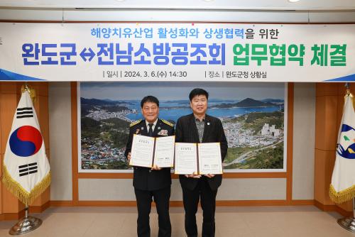 [½Åµ¿¾Æ¹æ¼Û=¿Ïµµ À̼±Á¾ ±âÀÚ] ¿Ïµµ±º°ú Àü³²¼Ò¹æ°øÁ¶È¸°¡ ÇØ¾çÄ¡À¯»ê¾÷ Ȱ¼ºÈ­¿Í ±¹¹ÎÀÇ »ý¸í º¸È£¿Í ¾ÈÀüÀ» À§ÇØ ÃÖÀü¼±¿¡¼­ ÀÏÇÏ´Â ¼Ò¹æ°ø¹«¿øµéÀÇ º¹Áö ÁõÁøÀ» À§ÇØ ¾÷¹« Çù¾àÀ» ü°áÇß´Ù. Çù¾à½ÄÀº Áö³­ 3¿ù 6ÀÏ ¿Ïµµ±ºÃ»¿¡¼­ ÁøÇàµÆÀ¸¸ç, ±èÇöö ¿ÏµµºÎ±º¡¦