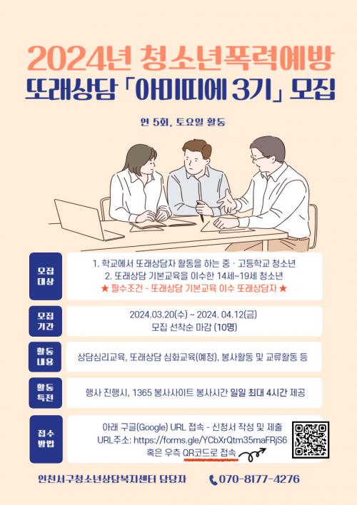 [½Åµ¿¾Æ¹æ¼Û ÀÎõ= À±¹Î½Ä ±âÀÚ]ÀÎõ ¼­±¸Ã»¼Ò³â»ó´ãº¹Áö¼¾ÅÍ¿¡¼­´Â ¿À´Â 20ÀϺÎÅÍ ´ÙÀ½ ´Þ 12ÀϱîÁö 2024³â Á¦3±â û¼Ò³âÆø·Â¿¹¹æ ¶Ç·¡»ó´ã ¿¬ÇÕȸ(ÀÌÇÏ ¾Æ¹Ì¶ì¿¡ 3±â)¿¡¼­ Ȱµ¿ÇÒ À§¿øÀ» ¸ðÁýÇÑ´Ù°í ¹àÇû´Ù. ÀÎõ¼­±¸Ã»¼Ò³â»ó´ãº¹Áö¼¾ÅÍ´Â ÀÎõ±¤¿ª½Ã ¼­±¸°¡ Áö¡¦