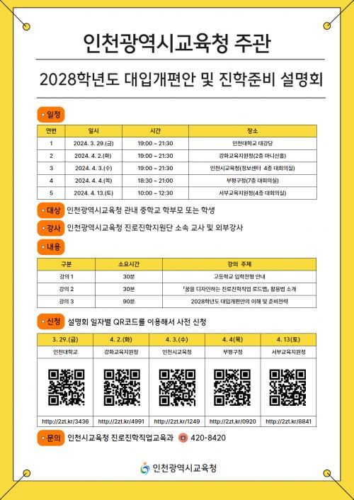 ÀÎõ±¤¿ª½Ã±³À°Ã», 2028 ´ëÀÔ°³Æí¾È ±Ç¿ªº° ¼³¸íȸ °³ÃÖ