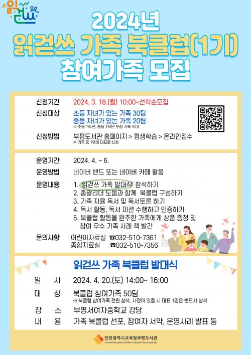[½Åµ¿¾Æ¹æ¼Û ÀÎõ=À±¹Î½Ä±âÀÚ]ÀÎõ±¤¿ª½Ã±³À°Ã»ºÎÆòµµ¼­°ü °üÀå ±èÀ翵Àº ÀÎõ½Ã±³À°Ã» ¿ªÁ¡»ç¾÷ÀÎ ÀаȾ² È®»êÀ» À§ÇØ ¡ºÀаȾ² °¡Á· ºÏŬ·´(1±â)¡» Âü¿© °¡Á·À» ºÎÆòµµ¼­°ü ȨÆäÀÌÁö¿¡¼­ ¼±Âø¼ø ¸ðÁýÇÑ´Ù. ÀаȾ² °¡Á· ºÏŬ·´Àº 4¿ùºÎÅÍ 6¿ù±îÁö ÀаȾ² Ȱµ¿À» Å롦