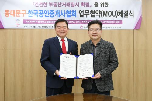 [½Åµ¿¾Æ¹æ¼Û µ¿´ë¹®=À̽ŵ¿±âÀÚ]¼­¿ï µ¿´ë¹®±¸´Â Áö³­ 18ÀÏ Çѱ¹°øÀÎÁß°³»çÇùȸ µ¿´ë¹®±¸Áöȸ¿ÍÀÇ ¾÷¹«Çù¾à(MOU)À» ÅëÇØ °ÇÀüÇÑ ºÎµ¿»ê°Å·¡Áú¼­ÀÇ È®¸³°ú µ¿´ë¹®±¸ ºÎµ¿»êÁß°³¾÷ ¹ßÀüÀ» À§ÇÑ »óÈ£ Çù·ÂÀ» °­È­Çß´Ù. ±¸Ã»Àå Á¢°ß½Ç¿¡¼­ ¿­¸° À̹ø Çù¾à½Ä¿¡´Â ÀÌÇÊÇü µ¿¡¦