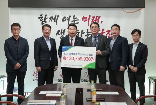 [½Åµ¿¾Æ¹æ¼Û=ÀÌÀçö ±âÀÚ] ´çÁø½Ã°¡ 21ÀÏ ´çÁø½Ãû Á¢°ß½Ç¿¡¼­ ½Ã ±Ý°íÀÎ NH³óÇùÀºÇà(ÁÖ) ´çÁø½ÃÁöºÎ(ÁöºÎÀå Àüö¼ö)·ÎºÎÅÍ Á¦ÈÞÄ«µå ÀÌ¿ë Àû¸³±Ý 130,759,930¿øÀ» Àü´Þ¹Þ¾Ò´Ù. ÀÌ´Â ´çÁø½Ã¿Í ³óÇù, Á¦ÈÞÄ«µå»ç°¡ °øµ¿À¸·Î ¸ÎÀº Çù¾à¿¡ µû¶ó Áö³­ÇØ ½Ã°¡ »ç¿ëÇÑ º¸Á¶¡¦