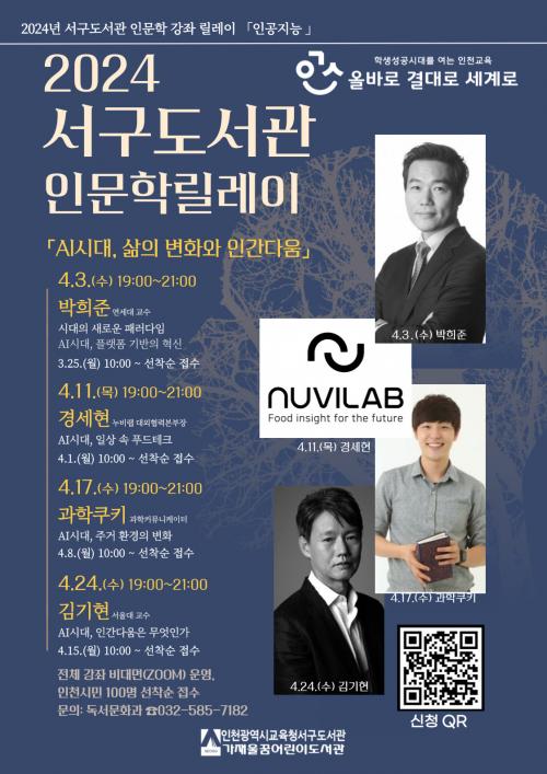 [½Åµ¿¾Æ¹æ¼Û ÀÎõ=À±¹Î½Ä±âÀÚ]ÀÎõ±¤¿ª½Ã±³À°Ã»¼­±¸µµ¼­°üÀº 2024³â ¡¸Àι®ÇÐ °­Á ¸±·¹ÀÌ¡¹¸¦ 4¿ù 3ÀϺÎÅÍ 24ÀϱîÁö ¸ÅÁÖ ¼ö¿äÀÏ ¿î¿µÇÑ´Ù. ¿ÃÇØÀÇ Àι®ÇÐ °­Á ¸±·¹ÀÌ ÁÖÁ¦´Â ¡®ÀΰøÁö´É¡¯À¸·Î ¼­±¸µµ¼­°üÀº ¡®AI½Ã´ë, »îÀÇ º¯È­¿Í Àΰ£´Ù¿ò¡¯À» ÁÖÁ¦·Î 4¿ù 3ÀÏ ¡¦