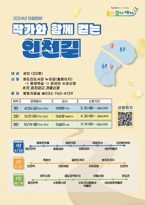 [½Åµ¿¾Æ¹æ¼Û ÀÎõ=À±¹Î½Ä±âÀÚ]ÀÎõ±¤¿ª½Ã±³À°Ã»È­µµÁøµµ¼­°üÀº 2024³â ¸¶À»Å½¹æ ÇÁ·Î±×·¥ ¡¸ÀÛ°¡¿Í ÇÔ²² °È´Â ÀÎõ ±æ¡¹À» 4¿ù°ú 5¿ù, 10¿ù ÃÑ 3ȸ ¿î¿µÇÑ´Ù. ¡¸ÀÛ°¡¿Í ÇÔ²² °È´Â ÀÎõ ±æ¡¹Àº ÀÎõÀ» ¹è°æÀ¸·Î ÇÏ´Â ¹®ÇÐÀÛǰÀ» ÀÐ°í ¸¶À»À» ޹æÇÏ¿© ÀÎõ ÇâÅä»ç¿Í ¡¦