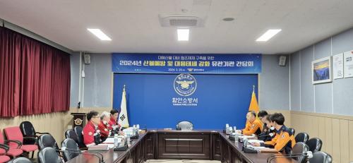 [½Åµ¿¾Æ¹æ¼Û ÇÔ¾È=À̽ŵ¿±âÀÚ]ÇԾȱºÀº Áö³­ 25ÀÏ ÇԾȼҹ漭 ÁßȸÀǽǿ¡¼­ »êºÒ¿¹¹æ ¹× ´ëÀÀż¼ °­È­¸¦ À§ÇÑ °£´ãȸ¸¦ ½Ç½ÃÇß´Ù. À̹ø °£´ãȸ¿¡´Â ±ºÀÇ »ê¸²³ìÁö°úÀå°ú ÇԾȼҹ漭ÀÇ ÇöÀå´ëÀÀ´ÜÀå µî ÃÑ 8¸íÀÌ Âü¼®ÇØ ´ëÇü »êºÒÈ­Àç ¹ß»ý ½Ã ºñ»ó°ü¸®Ã¼°è °¡µ¿ ¹×¡¦