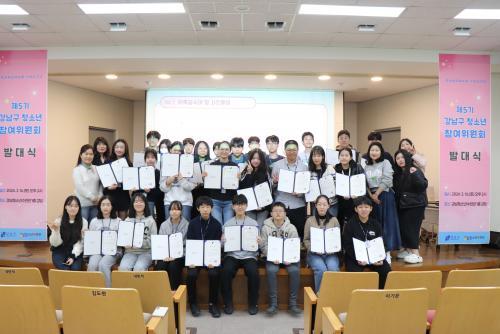 [½Åµ¿¾Æ¹æ¼Û °­³²=À̽ŵ¿±âÀÚ]°­³²±¸°¡ Áö³­ 3¿ù 16ÀÏ Ã»¼Ò³â 30¸íÀ¸·Î ±¸¼ºµÈ Á¦5±â °­³²±¸ û¼Ò³âÂü¿©À§¿øÈ¸¸¦ ¹ßÁ·Çß´Ù. À̵éÀº ¿ÃÇØ 12¿ù±îÁö û¼Ò³â Á¤Ã¥»ç¾÷À» ¸ð´ÏÅ͸µÇϰí û¼Ò³â Á¤Ã¥À» ¹ß±¼ÇØ Á¦¾ÈÇÒ °èȹÀÌ´Ù. û¼Ò³âÂü¿©À§¿øÈ¸´Â °­³²±¸ÀÇ Ã»¼Ò³â Á¤Ã¥ ¡¦