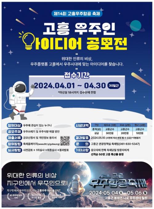 [½Åµ¿¾Æ¹æ¼Û°íÈï=¹Ú±¤¿Á±âÀÚ] °íÈﱺ(±º¼ö °ø¿µ¹Î)Àº ¿À´Â 5¿ù 4ÀϺÎÅÍ 6ÀϱîÁö 3Àϰ£ ³ª·Î¿ìÁÖ¼¾ÅÍ ¿ìÁÖ°úÇаü ÀÏ¿ø¿¡¼­ °³ÃÖÇÏ´Â Á¦14ȸ °íÈï¿ìÁÖÇ×°øÃàÁ¦ÀÇ °ü½ÉÀ» ³ôÀ̰í, ¿ìÁÖÇ×°ø Á߽ɵµ½Ã °íÈïÀÇ À̹ÌÁö¸¦ Á¤¸³ÇϰíÀÚ ¡®°íÈï ¿ìÁÖÀÎ ¾ÆÀ̵ð¾î °ø¸ðÀü¡¯À» °³ÃÖÇÑ´Ù¡¦