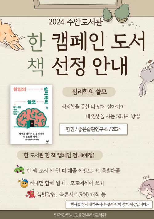 [½Åµ¿¾Æ¹æ¼Û ÀÎõ=À±¹Î½Ä±âÀÚ]ÀÎõ±¤¿ª½Ã±³À°Ã»Á־ȵµ¼­°üÀº ½Ã¹Î ÅõÇ¥¸¦ °ÅÃÄ ¿ÃÇØ ¡®ÇÑ µµ¼­°ü ÇÑ Ã¥¡¯ Ä·ÆäÀÎ µµ¼­¸¦ ÇѹΠ±³¼öÀÇ ¡®½É¸®ÇÐÀÇ ¾µ¸ð¡¯·Î È®Á¤Çß´Ù. Á־ȵµ¼­°üÀº ÇÑ Ã¥ Ä·ÆäÀÎ ÁÖÁ¦¸¦ ¡®¸¶À½¡¤°¨Á¤¡¯À¸·Î Á¤Çϰí 3¿ù 18ÀϺÎÅÍ 27ÀϱîÁö ¿­Èê°£ ½Ã¹Î¡¦