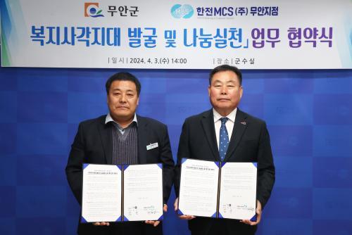 [½Åµ¿¾Æ¹æ¼Û=ÀÌÀº¼±±âÀÚ] Àü³² ¹«¾È±º(±º¼ö ±è»ê)Àº 3ÀÏ ÇÑÀüMCS(ÁÖ) ¹«¾ÈÁöÁ¡(ÁöÁ¡Àå Á¦°¥¿¬)°ú º¹Áö»ç°¢Áö´ë ¹ß±¼ ¹× ³ª´® ½ÇõÀ» À§ÇÑ ¾÷¹«Çù¾àÀ» ü°áÇß´Ù. À̳¯ Çù¾à¿¡´Â ±è»ê ±º¼ö¿Í Á¦°¥¿¬ ÁöÁ¡ÀåÀÌ Âü¼®ÇÏ¿© °Ëħ¿øÀ» ÅëÇÑ º¹Áö»ç°¢Áö´ë À§±â°¡±¸ ¹ß±¼°ú º¹Áö¡¦