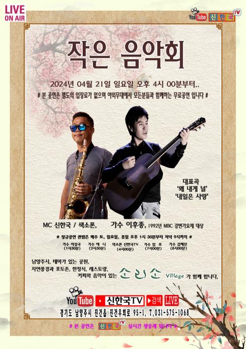 ½ÅÇѱ¹TV, °¡¼ö ÀÌÈÄÁ¾, º½ ¸ÂÀÌ 'ÀÛÀº À½¾Çȸ' 4¿ù 21ÀÏ °³ÃÖ