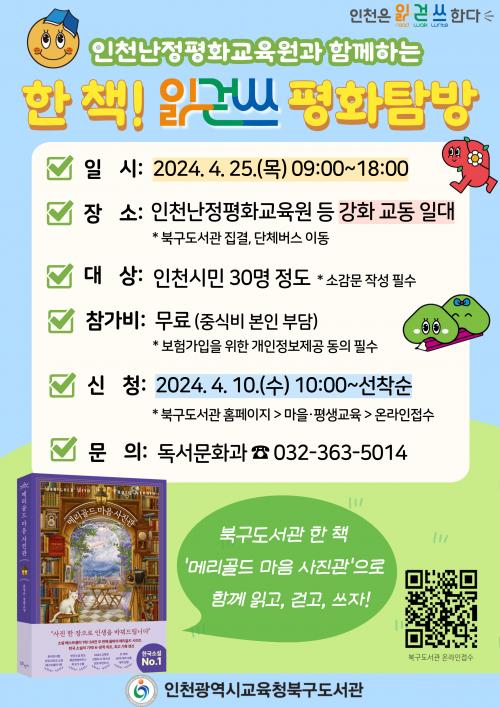 [½Åµ¿¾Æ¹æ¼Û ÀÎõ=À±¹Î½Ä±âÀÚ]ÀÎõ±¤¿ª½Ã±³À°Ã»ºÏ±¸µµ¼­°üÀº ¿ÃÇØ Á¦60ȸ µµ¼­°üÁÖ°£À» ¸Â¾Æ ÀÎõ³­Á¤ÆòÈ­±³À°¿ø°ú ÇÔ²²ÇÏ´Â ¡¸ÇÑ Ã¥! ÀаȾ² ÆòȭŽ¹æ¡¹À» 25ÀÏ ¿î¿µÇÑ´Ù. ޹æÀº ÇÑ Ã¥ Ä·ÆäÀÎ µµ¼­ÀÎ ¡®¸Þ¸®°ñµå ¸¶À½ »çÁø°ü¡¯(À±Á¤Àº ÁöÀ½, ºÏ·Î¸Á½º, 2024)À» 8ÀÏ¡¦