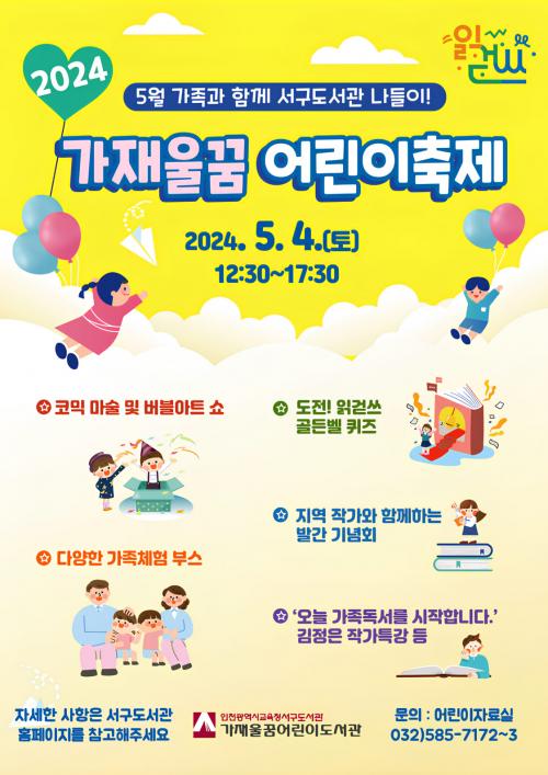 [½Åµ¿¾Æ¹æ¼Û ÀÎõ=À±¹Î½Ä±âÀÚ]ÀÎõ±¤¿ª½Ã±³À°Ã»¼­±¸µµ¼­°üÀº ¾î¸°ÀÌÆ¯È­µµ¼­°üÀÎ °¡Àç¿ï²Þ¾î¸°À̵µ¼­°ü °³°ü ÀÌÈÄ Ã³À½À¸·Î ¡®ÀаȾ² °¡Àç¿ï²Þ ¾î¸°ÀÌ ÃàÁ¦¡¯¸¦ 5¿ù 4ÀÏ °³ÃÖÇÑ´Ù. ÃàÁ¦´Â Áö¿ª û¼Ò³â µ¿¾Æ¸® Àç´É ³ª´®°ú °¡Á· °ø¿¬À» ½ÃÀÛÀ¸·Î ´Ù¾çÇÑ ÇÁ·Î±×·¥À» Áø¡¦