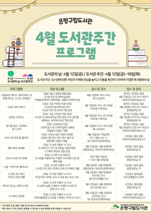 ÀºÆò±¸¸³µµ¼­°ü, 4¿ù µµ¼­°ü ÁÖ°£ ¸ÂÀÌ ´Ùä·Î¿î µ¶¼­¹®È­ÇÁ·Î±×·¥ ¿î¿µ
