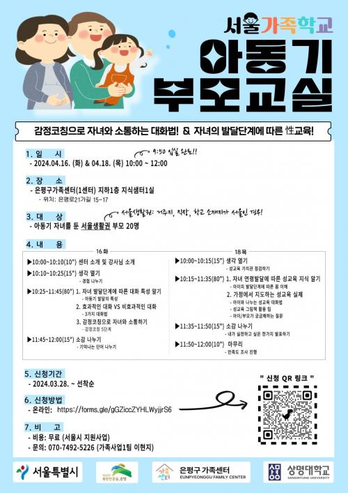 [½Åµ¿¾Æ¹æ¼Û ÀºÆò±¸=À̽ŵ¿±âÀÚ]ÀºÆò±¸´Â ÀºÆò±¸°¡Á·¼¾ÅÍ¿¡¼­ °¡Á· ³» °¥µîÀ̳ª ¹®Á¦¸¦ ¿¹¹æÇϱâ À§ÇÑ »ý¾ÖÁֱ⺰ ¸ÂÃãÇü ±³À° ÇÁ·Î±×·¥ÀÎ ¡®¼­¿ï°¡Á·Çб³¡¯¸¦ ½Ç½ÃÇϰí ÀÖ´Ù°í ¹àÇû´Ù. ¡®¼­¿ï°¡Á·Çб³¡¯´Â ¿¹ºñºÎºÎ±³½Ç, ½ÅÈ¥ºÎºÎ±³½Ç, ¾Æµ¿±â ºÎ¸ð±³½Ç, û¼Ò³â±â ºÎ¡¦