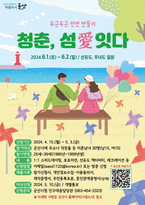 [½Åµ¿¾Æ¹æ¼Û=À̺´½Ä±âÀÚ] ±º»ê½Ã°¡ 4¿ù 15ÀϺÎÅÍ 5¿ù 3ÀϱîÁö ¹ÌÈ¥³²³àÀÇ ¸¸³² Çà»çÀÎ 「ûÃá, ¼¶äñÀÕ´Ù」 Âü°¡ÀÚ¸¦ ¸ðÁýÇÑ´Ù. 「ûÃá, ¼¶äñÀÕ´Ù」 ´Â ¹Ù»Û ÀÏ»ó µîÀ¸·Î ¸¸³²ÀÇ ±âȸ°¡ ÀûÀº ûÃá ³²³àµé¿¡°Ô ÀÚ¿¬½º·¯¿î ¸¸³²ÀÇ ±âȸ¸¦ Á¦°øÇÏ¡¦