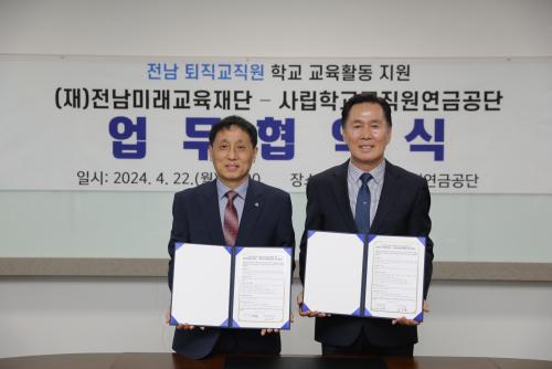 [½Åµ¿¾Æ¹æ¼Û Àü³²¿©¼ö=À̽ŵ¿±âÀÚ]Àü³²¹Ì·¡±³À°Àç´Ü(¿øÀå À̱æÈÆ)°ú »ç¸³Çб³±³Á÷¿ø¿¬±Ý°ø´Ü(º¹Áö»ç¾÷½ÇÀå ±èâ¼ö)Àº Áö³­ 22ÀÏ »ç¸³Çб³±³Á÷¿ø¿¬±Ý°ø´Ü¿¡¼­ ¾÷¹«Çù¾àÀ» ¸Î°í, ÅðÁ÷ ±³Á÷¿øµéÀÇ ±³À°ÇöÀå Áö¿ø Ȱ¼ºÈ­¿¡ ÈûÀ» ¸ðÀº´Ù. À̹ø Çù¾àÀº ÅðÁ÷ ±³Á÷¿øµéÀÇ ÀΡ¦