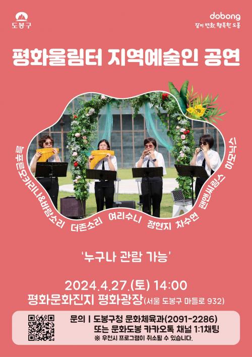 [½Åµ¿¾Æ¹æ¼Û µµºÀ±¸=À̽ŵ¿±âÀÚ]µµºÀ±¸°¡ ¸Å¿ù ³Ý° ÁÖ Åä¿äÀϸ¶´Ù ÆòÈ­¿ï¸²ÅÍ¿¡¼­ Áö¿ª¹®È­¿¹¼úÀεéÀÇ °ø¿¬ÀÌ ÆîÃÄÁø´Ù°í ¹àÇû´Ù. ¾Õ¼­ ±¸´Â Áö¿ª¿¹¼úÀε鿡°Ô ¹®È­¿¹¼ú Çà»ç Âü¿© ±âȸ¸¦ ºÎ¿©ÇϰíÀÚ Âü¿© ¿¹¼úÀÎÀ» ¸ðÁýÇß°í ¶ô, ¹«¿ë¡¤ÆÛÆ÷¸Õ½º, ¾Ç±â ¿¬ÁÖ, ½Ã°¢ ¿¹¡¦