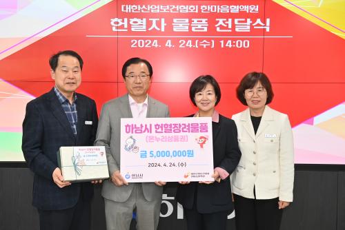[½Åµ¿¾Æ¹æ¼Û Çϳ²½Ã=À̽ŵ¿±âÀÚ]Çϳ²½Ã(½ÃÀå ÀÌÇöÀç)°¡ 24ÀÏ ½Ãû º»°ü ½ÃÀå½Ç¿¡¼­ ¡®2024³â ÇåÇ÷ÀÚ Áö¿ø ¹°Ç° Àü´Þ½Ä¡¯À» ¿­°í ´ëÇÑ»ê¾÷º¸°ÇÇùȸ ÇѸ¶À½Ç÷¾×¿ø¿¡ ¿Â´©¸®»óǰ±Ç 1¸¸¿ø±Ç 500ÀåÀ» ±âÁõÇß´Ù. À̳¯ ÇåÇ÷ÀÚ Áö¿ø ¹°Ç° Àü´Þ Çà»ç¿¡´Â ÀÌÇöÀç Çϳ²½ÃÀå, Ȳ¡¦