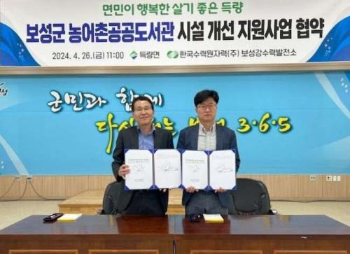 [½Åµ¿¾Æ¹æ¼Ûº¸¼º=¹Ú±¤¿Á±âÀÚ] º¸¼º±ºÀº Áö³­ 26ÀÏ µæ·®¸éÀÌ Çѱ¹¼ö·Â¿øÀÚ·Â(ÁÖ) º¸¼º°­¼ö·Â¹ßÀü¼Ò(¼ÒÀå Àüº´È«)¿Í ¡®º¸¼º±º ³ó¾îÃ̰ø°øµµ¼­°ü ½Ã¼³ °³¼± Áö¿ø »ç¾÷¡¯ ÃßÁøÀ» À§ÇÑ ¾÷¹« Çù¾àÀ» ü°áÇß´Ù°í ¹àÇû´Ù. µæ·®¸éÀº À̹ø ¾÷¹« Çù¾àÀ» ÅëÇØ Çѱ¹¼ö·Â¿øÀÚ·Â(¡¦