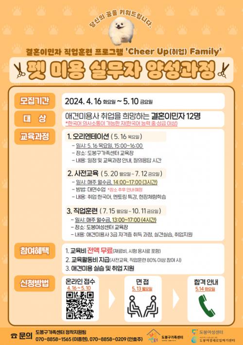 [½Åµ¿¾Æ¹æ¼Û µµºÀ±¸=À̽ŵ¿±âÀÚ]¹Ý·Áµ¿¹° »ê¾÷ÀÌ ±Þ¼Óµµ·Î ¼ºÀåÇϰí ÀÖ´Â °¡¿îµ¥ µµºÀ±¸(±¸Ã»Àå ¿À¾ð¼®)°¡ °áÈ¥À̹ÎÀÚ¸¦ ´ë»óÀ¸·Î ¡¸Cheer up(Ãë¾÷) Family-Æê ¹Ì¿ë ½Ç¹«ÀÚ ¾ç¼º°úÁ¤¡¹À» °³¼³Çß´Ù. µµºÀ±¸°¡Á·¼¾ÅÍ(¼¾ÅÍÀå °­Áø¾Æ)¿Í µµºÀ¿©¼º¼¾ÅÍ(°üÀå ¹ÚÂù¾Ö)°¡ ÇÔ²²¡¦
