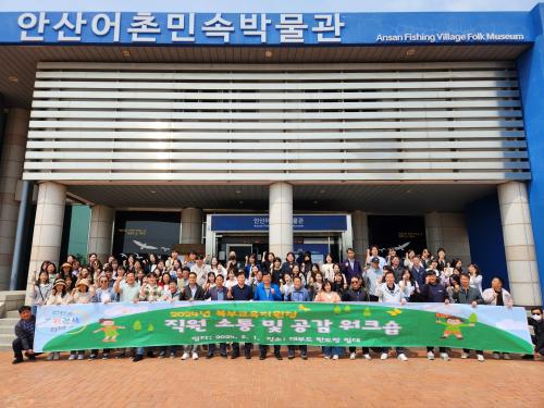 [½Åµ¿¾Æ¹æ¼Û ÀÎõ= À±¹Î½Ä±âÀÚ]ÀÎõºÏºÎ±³À°Áö¿øÃ»(±³À°Àå ÃÖöȣ)Àº ¼öÆòÀû Á¶Á÷¹®È­ Á¶¼ºÀ» À§ÇØ Á÷¿ø 100¿© ¸íÀÌ Âü¿©ÇÑ ¿öÅ©¼óÀ» 1ÀÏ ´ëºÎµµ źµµÇ× ÀÏ´ë¿¡¼­ ÁøÇàÇß´Ù. ¿öÅ©¼óÀº Á÷¿øµéÀÌ È­ÇÕ°ú µ¿ÇàÀÇ ½Ã°£À» ÅëÇØ Ȱ±âÂù Á÷Àå ºÐÀ§±â¸¦ Á¶¼ºÇÒ ¼ö ÀÖµµ·Ï ¸¶¡¦