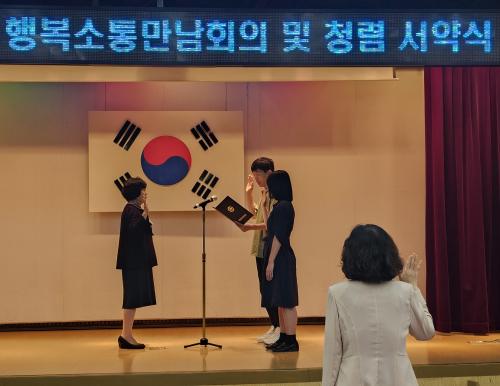 [½Åµ¿¾Æ¹æ¼Û ÀÎõ= À±¹Î½Ä±âÀÚ]ÀÎõµ¿ºÎ±³À°Áö¿øÃ»(±³À°Àå ÀÌ¿ëÈñ)Àº Àü Á÷¿øÀÌ Ã»·Å ÀÇÁö¸¦ »õ·ÎÀÌ ´ÙÁö°í ¹ÝºÎÆÐ¡¤Ã»·Å ½Çõ ¹®È­ È®»ê¿¡ ¾ÕÀå¼³ °ÍÀ» ´ÙÁüÇϴ û·Å¼­¾à½ÄÀ» 1ÀÏ °³ÃÖÇß´Ù. û·Å ¼­¾à¼­¿¡´Â °øÁ÷Àڷμ­ ⦁¹ý°ú ¿øÄ¢ Áؼö ⦁ºÎ´çÇÑ ÀÌ¡¦