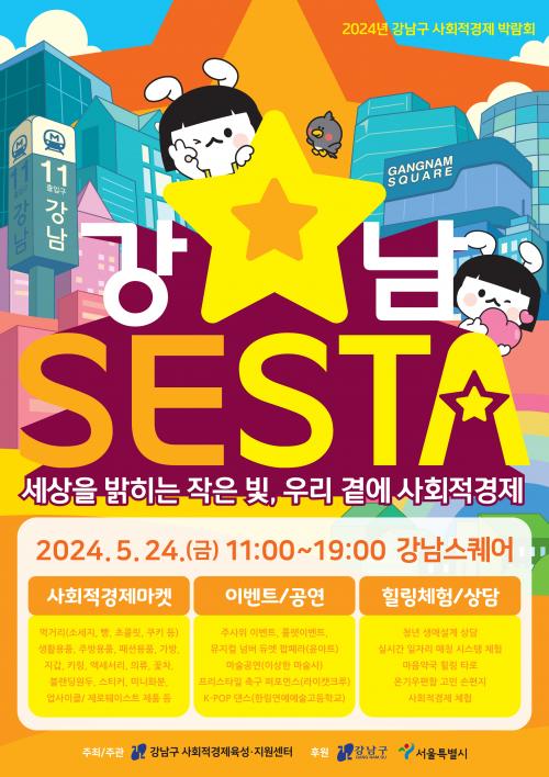 [½Åµ¿¾Æ¹æ¼Û °­³²±¸=À̽ŵ¿±âÀÚ]°­³²±¸°¡ ¿À´Â 24ÀÏ 11½Ã~19½Ã °­³²½ºÄù¾î(°­³²¿ª 11¹ø Ãⱸ ¾Õ)¿¡¼­ ¡®2024 °­³²±¸ »çȸÀû°æÁ¦ ¹Ú¶÷ȸ¡¯¸¦ °³ÃÖÇÑ´Ù. »çȸÀû°æÁ¦±â¾÷Àº Ãë¾à°èÃþ¿¡°Ô ¼­ºñ½º ¶Ç´Â ÀÏÀÚ¸®¸¦ Á¦°øÇÏ´Â µî »çȸ ¹®Á¦ ÇØ°á¿¡ °øÇåÇϸ鼭 °æÁ¦È°µ¿À» Çϴ¡¦