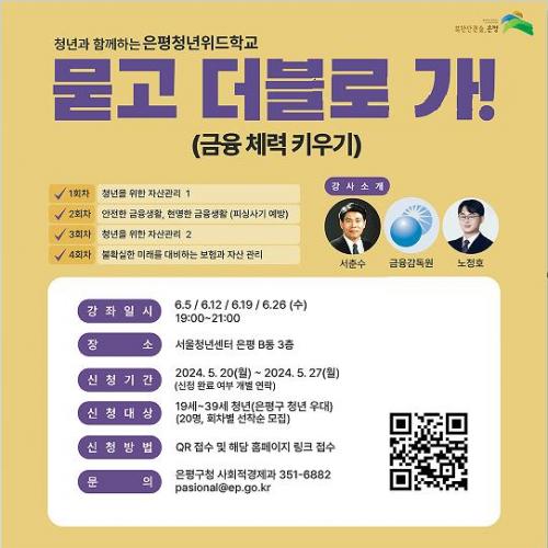 [½Åµ¿¾Æ¹æ¼Û ÀºÆò±¸=À̽ŵ¿±âÀÚ]ÀºÆò±¸´Â û³âµéÀÇ »çȸÀûÀÀÀ» À§ÇÑ ¼ö¿äÀÚ ¸ÂÃãÇü ±³À° ÇÁ·Î±×·¥ ¡®ÀºÆò û³â À§µåÇб³¡¯ÀÇ ¼¼ ¹øÂ° ±³À°À¸·Î ±ÝÀ¶¡¤°æÁ¦ ºÐ¾ßÀÇ ¡®±ÝÀ¶ ü·Â Ű¿ì±â¡¯¸¦ ¿î¿µÇÑ´Ù°í ¹àÇû´Ù. À̴ û³âÀÇ À繫¾ÈÁ¤°ú ¿Ã¹Ù¸¥ ±ÝÀ¶ ÀÇ»ç°áÁ¤À» À§ÇÑ °­¡¦