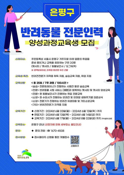 [½Åµ¿¾Æ¹æ¼Û ÀºÆò±¸=À̽ŵ¿±âÀÚ]ÀºÆò±¸´Â ¿À´Â 13ÀϱîÁö ¹Ý·Áµ¿¹° °ü·Ã Àü¹®°¡ À°¼º ¹× Ã롤â¾÷ ¿¬°è¸¦ À§ÇÑ ¡®¹Ý·Áµ¿¹° Àü¹®Àη ¾ç¼º°úÁ¤¡¯ ±³À°»ýÀ» ¸ðÁýÇÑ´Ù°í ¹àÇû´Ù. ¡®¹Ý·Áµ¿¹° Àü¹®Àη ¾ç¼º°úÁ¤¡¯Àº ¹Ý·Áµ¿¹° »ê¾÷ Áß Àη ä¿ë ¿ä±¸°¡ ³ôÀº ¡¯µ¿¹°º¸°Ç»ç¡®¡¦