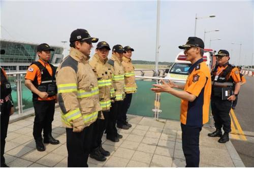 [½Åµ¿¾Æ¹æ¼Û ÀÎõ= À±¹Î½Ä±âÀÚ] ÀÎõ¼Ò¹æº»ºÎ(º»ºÎÀå ÀÓ¿ø¼·)Àº 5ÀÏ ¿ÀÈÄ 15½Ã ÀÎõ±¹Á¦°øÇ×À» ¹æ¹®ÇÏ¿© ¡°2024 ÇÑ-¾ÆÇÁ¸®Ä« Á¤»óȸÀÇ¡±ÀÇ ¼º°øÀûÀÎ °³ÃÖ¸¦ Áö¿øÇϱâ À§ÇØ ÀÎõ±¹Á¦°øÇ× ¼Ò¹æ¾ÈÀü´ëÃ¥À» ÃßÁøÇϰí ÀÖ´Â Á÷¿øµéÀ» °Ý·ÁÇß´Ù. À̳¯ ÀÓ¿ø¼· º»ºÎÀåÀº ¡°20¡¦