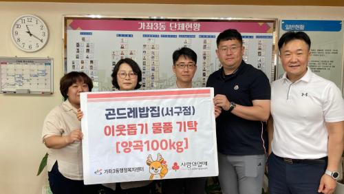 [½Åµ¿¾Æ¹æ¼Û ÀÎõ= À±¹Î½Ä±âÀÚ]ÀÎõ ¼­±¸ ½É°îµ¿ ¼ÒÀçÀÇ °ïµå·¹¹äÁý ¼­±¸Á¡(´ëÇ¥ ±è¿µÁÖ)°ú Àλý°Ç¾î¹°(´ëÇ¥ °íÇü±â)Àº Áö³­ 7ÀÏ °¡ÁÂ3µ¿ÀÇ °ü³» ¾î·Á¿î ÀÌ¿ôÀ» À§ÇÑ ³ª´®À¸·Î ½Ò 100kgÀ» °¡ÁÂ3µ¿ Áö¿ª»çȸº¸ÀåÇùÀÇü(°øµ¿À§¿øÀå ±è¼ºÁÖ, ÀÌÃáÀÚ)¿¡ Àü´ÞÇß´Ù. °ïµå¡¦