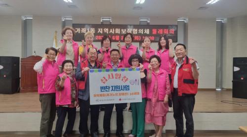 [½Åµ¿¾Æ¹æ¼Û ÀÎõ= À±¹Î½Ä±âÀÚ] °¡ÁÂ1µ¿ Áö¿ª»çȸº¸ÀåÇùÀÇü(µ¿Àå ¹ÚÇϳ², °øµ¿À§¿øÀå À̵οµ)´Â Ưȭ»ç¾÷À¸·Î ½º½º·Î ¹ÝÂùÀ» ¸¶·ÃÇÏ´Â µ¥ ¾î·Á¿òÀ» °Þ´Â °¡±¸¿¡ ¹ÝÂùÀ» ¹è´ÞÇÏ´Â »ç¾÷À» 2016³âºÎÅÍ 8³â° À̾î¿À°í ÀÖ´Ù. ¡®½Ê½ÃÀÏÂù¡¯ Áö¿ø»ç¾÷Àº Áö¿ª ³» °á½ÄÀÌ¡¦