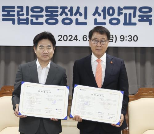 [½Åµ¿¾Æ¹æ¼Û Àü³²¿©¼ö=À̽ŵ¿±âÀÚ]Àü¶ó³²µµ±³À°Ã»°ú ±¤º¹È¸ Àü¶ó³²µµÁöºÎ(ÁöºÎÀå ¼ÛÀÎÁ¤)Àº 28ÀÏ Àü³²±³À°Ã»¿¡¼­ ¡®¹ÎÁ·Á¤±â¿Í µ¶¸³¿îµ¿Á¤½Å ¼±¾ç±³À°À» À§ÇÑ ¾÷¹«Çù¾à¡¯À» ü°áÇß´Ù.À̳¯ Çù¾à½ÄÀº ±è´ëÁß ±³À°°¨°ú ±¤º¹È¸ Àü¶ó³²µµÁöºÎÀ» ºñ·ÔÇÑ µÎ ±â°ü °ü°èÀÚµéÀÌ Âü¡¦