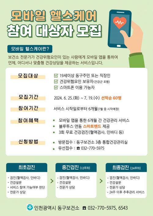[½Åµ¿¾Æ¹æ¼Û ÀÎõ= À±¹Î½Ä±âÀÚ] ÀÎõ µ¿±¸(±¸Ã»Àå ±èÂùÁø)´Â Ç÷¾Ð, Ç÷´ç ¹× °íÁöÇ÷Áõ µî °Ç°­À§Çè¿äÀÎÀÌ ÀÖ´Â ÁÖ¹ÎÀ» ´ë»óÀ¸·Î 7¿ùºÎÅÍ 24ÁÖ°£ ¸ð¹ÙÀÏÇコÄÉ¾î »ç¾÷À» ¿î¿µÇÑ´Ù°í ¹àÇû´Ù. ÀÌ »ç¾÷Àº Áö¿ªÁÖ¹ÎÀÇ ÀÚ°¡ °Ç°­°ü¸® ´É·Â Çâ»óÀ» µ½±â À§ÇØ º¸°Ç¼Ò Ç÷§Æû¡¦